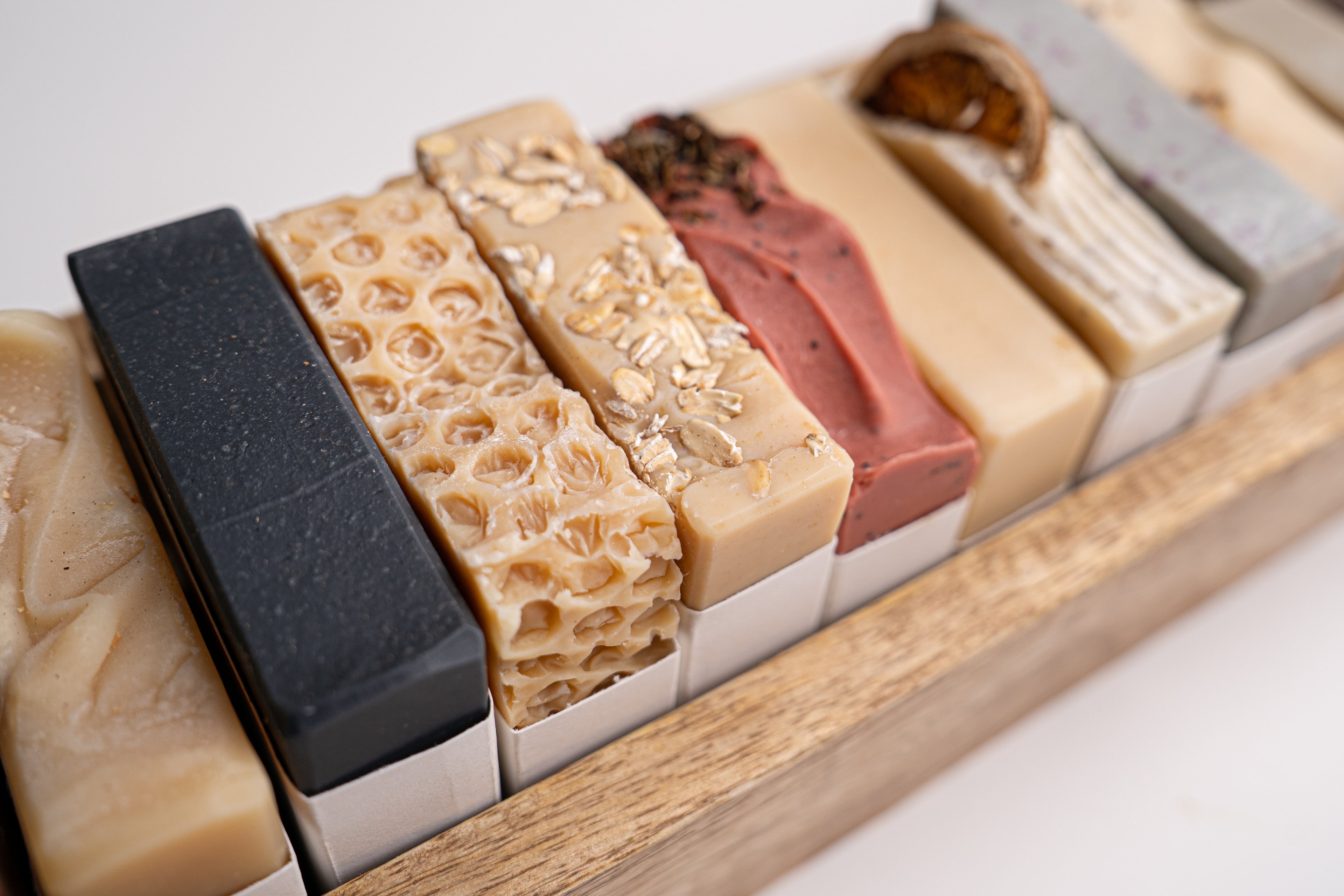 Our soaps use only real, premium fats for richer lather, silkier glide, and superior skin benefits including hydration, barrier support, and vitamin nourishment. We avoid synthetic fragrances and essential oils, which can be harsh, and instead achieve gentle, skin-close scents by infusing oils, resins, and milk sugars, resulting in a naturally elegant “clean” aroma.