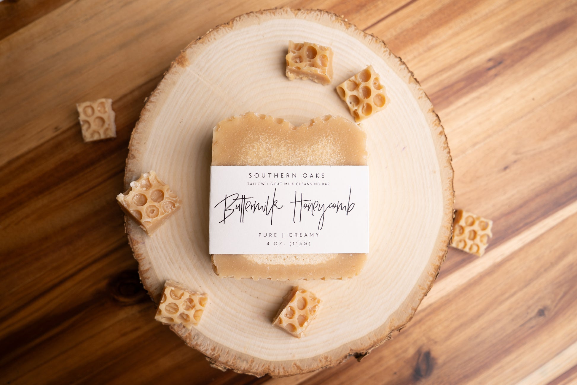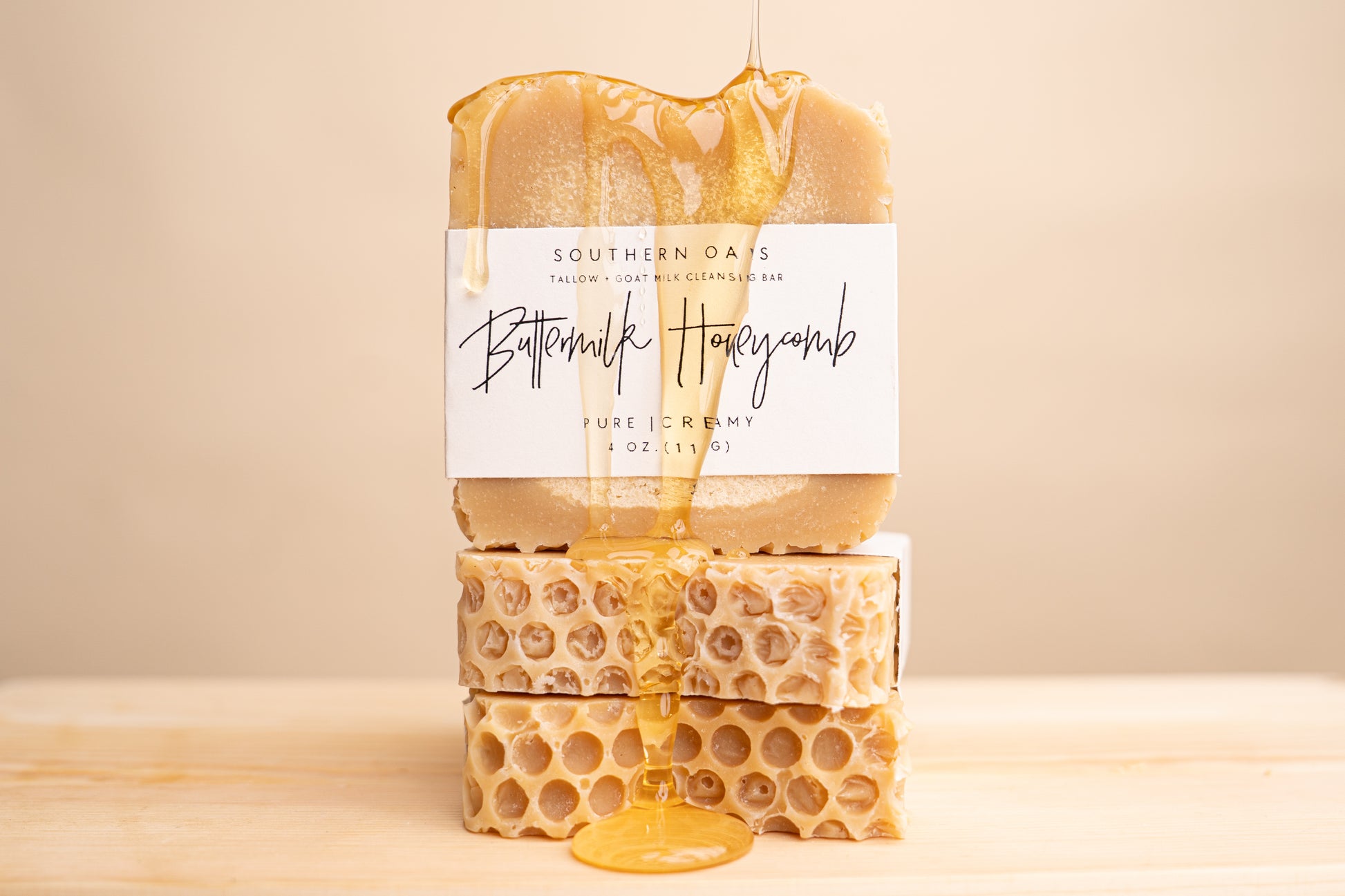 Infused with local honey and real buttermilk, this bar offers a touch of sweetness and deep hydration — leaving your skin soft, smooth, and radiant. Its honeycomb-inspired design captures the beauty of the hive and the heritage of Southern craftsmanship.